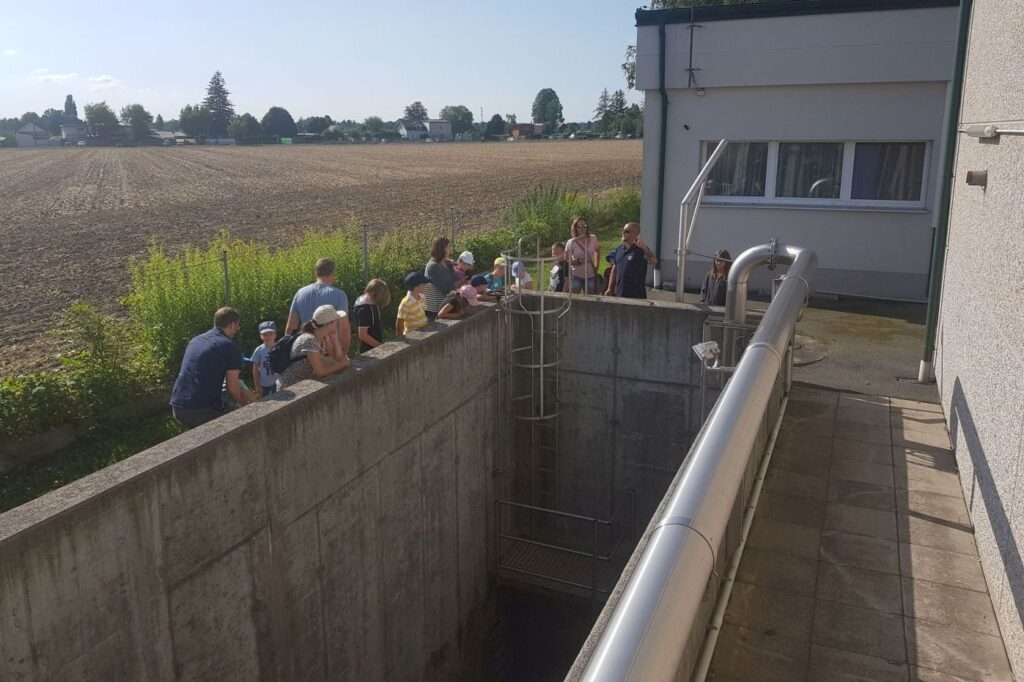 Nach einer kurzen Begrüßung durch GF Ing. Martin Hornyik, der einen groben Umriss über die Tätigkeitsfelder des Verbandes gab, wurden die Besucher in 2 Gruppen aufgeteilt. Eine Gruppe wurde von Klärfacharbeiter Rainer Lenz über das Kläranlagengelände geführt und es wurden alle Vorgänge beschrieben und „in echt“ besichtigt und bestaunt. Die andere Gruppe bekam währendessen durch einen kurzen Film einen theoretischen Einblick in alle Vorgänge auf der Kläranlage, und Klärfacharbeiter Klaus Zrim beschrieb zusätzlich alle Bestandteile der Kläranlage und deren Funktion in der Theorie. Zusätzlich wurde auch ein Einblick in das Leitsystem der Aussenstationen und in die Funktionsweise einer Pumpstation gegeben, bevor die Gruppen dann getauscht wurden.